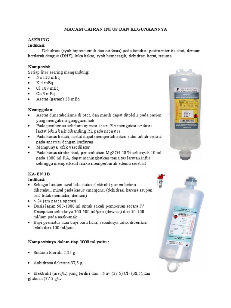 Macam Cairan Infus Dan Kegunaannya Docx